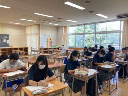 おはようございます。夏休みですが、朝早くからたくさんの生徒が集まり、自主的に勉強に取り組んでいます。1学期にやり残したところ、今のうちに克服してしまいましょう。
