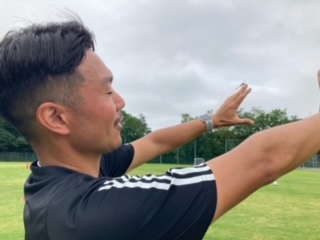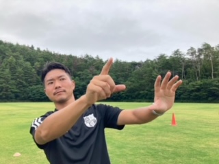 集合写真をどう撮るか一生懸命説明してくれている智先生。指先に偶然トンボがとまってそちらを撮るほうに夢中になってしまいました。(近藤)