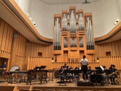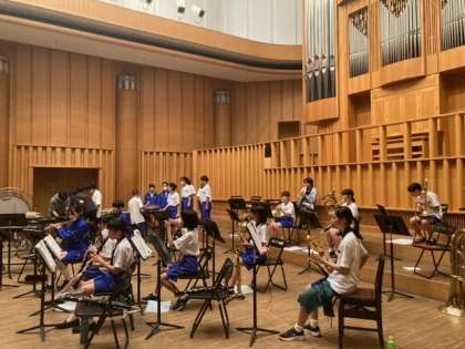 合宿おつかれさまです!こちらは吹奏楽部、コンクールまであと8日となる本日は、実際の会場となる府中の森劇場でホール練習を行わせていただきました。楽器の運搬などのために、卒業生や保護者の方々もサポートに来ていただき、本当にありがとうございました。響きの美しいこのホールでの練習は、3時間があっという間に感じられるほどでした。ラストスパート、頑張っていきましょう。