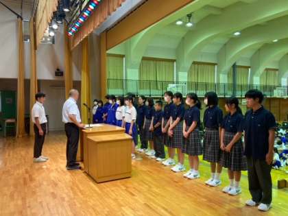 昨日は吹奏楽部メンバーで、学芸発表会の演目について話し合いました。誰もが知っているような有名な曲から吹奏楽らしい曲まで、聴いてくれるみんなを楽しませようといろいろなアイデアが出されていました。また朝の集会では、夏のコンクールの表彰をしていただきました。今とっても勢いのあるメンバーたち、これからますます成長していきます。