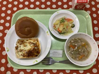 なすとマカロニが入ったミートソースにホワイトソースをかけ、さらにチーズをのせてオーブンで焼く、手間のかかった料理です。ボリュームがありましたが、味わい深く、みんなたくさん食べました!