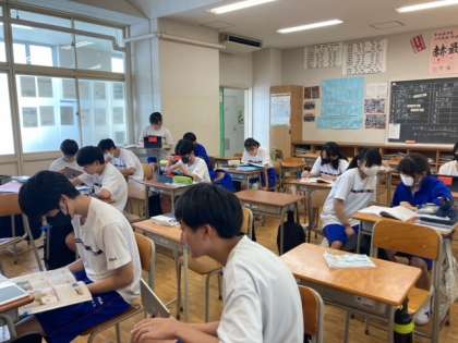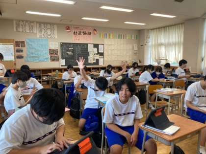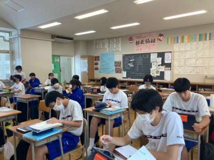 朝、昇降口で「今日は英語ありますね!」と笑顔で挨拶をしてくれた3年A組の女子。3時間目の英語クラス、今日は定期考査対策をしました。3年生の映画は内容が盛りだくさんですが、みんな意欲的に取り組んでいました。