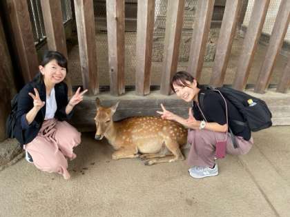 先生たちも鹿と記念写真です。
