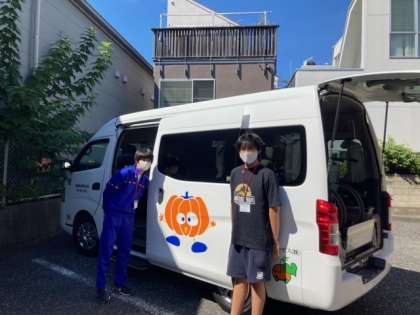 いつもお世話になっているパンプキンバス、本日の職場体験では、巡回の車に乗せていただいています。本校の駐車場にも立ち寄ってくれました。昨日の終了報告で、学んだ内容をとても楽しそうに書いていたこのグループ、今日も一生懸命がんばっています。