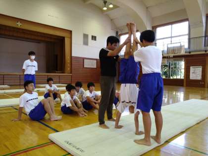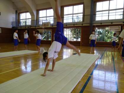 倒立前転や前方倒立回転跳びなどの難しい技に挑戦する生徒も増えています。