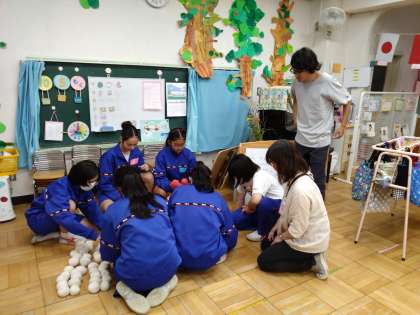 三島幼稚園では、運動会「玉入れ」の準備をしていました。
