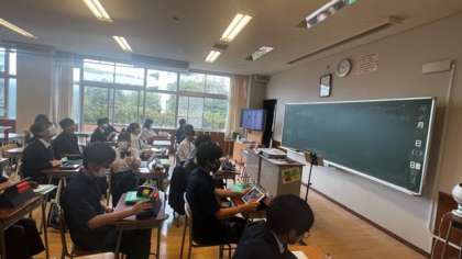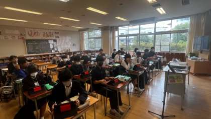 10月10日の10:10に合わせて写真を撮りました。日々の授業もしっかり頑張っています!この後、スピーチに向けての原稿作りをしました。(松田)