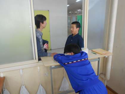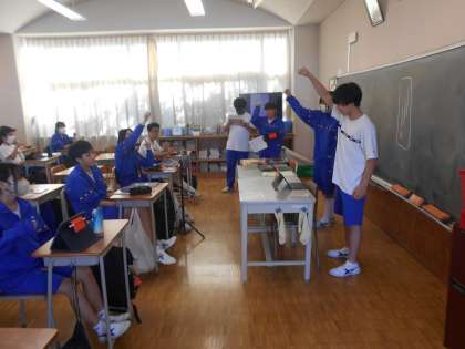 今日は、各クラスで生徒総会に向けて議案書討議を行っています。