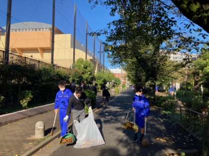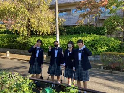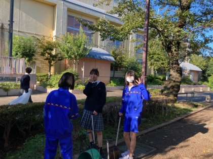 おはようございます。今朝の呑川緑道、日差しも秋らしくなってきました。新しい整美委員たちとボランティア参加者が今朝も近隣のお掃除をしてくれました。道ゆくひとに「おはようございます」と挨拶ができる生徒もいて、素晴らしい!と思いました。気持ち良い挨拶、素敵な一日を作ってくれそうです。