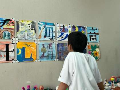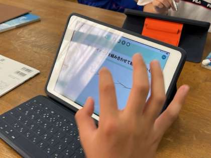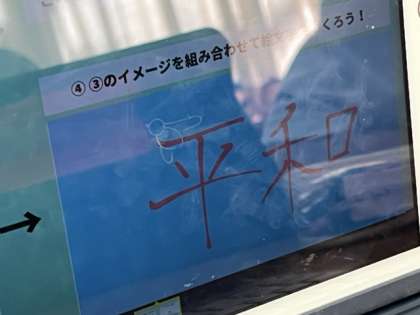 タブレットでとりあえず描いてみる生徒もいれば、ずっと悩む生徒もいて…。