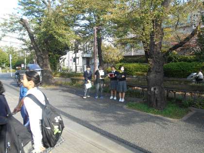 3年生の学級委員も門の前に立ち、何やら調査をしています(o^—^o)