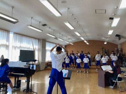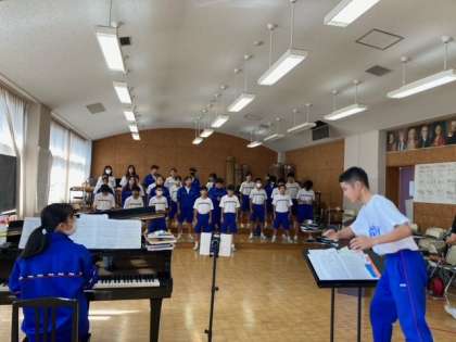 5時間目の音楽室、1年生の課題曲”Let’s Search for Tomorrow”を1-C が練習していました。気合いをみんなに入れる指揮者の掛け声で、みんなの声に力強さが増していきました。いつも元気いっぱいの1-C、全身で表現するエネルギッシュな歌声がとても素敵でした。