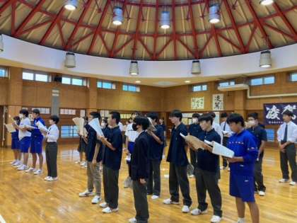 2年生のクラス別合唱練習、武道場やミーティングルームの鍵を取りに来るのも、CDプレイヤーを借りに来るのも、どのクラスもとても素早くて、練習に積極的です。練習内容も、歌詞の意味を考えて強弱に工夫をしたり、基本の発声練習に立ち返っていたり、自分たちで工夫をしながら歌声がどんどんレベルアップしています。来週の本番に向けてラストスパート、土日をしっかり休んで、また頑張りましょう♪
