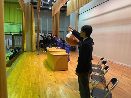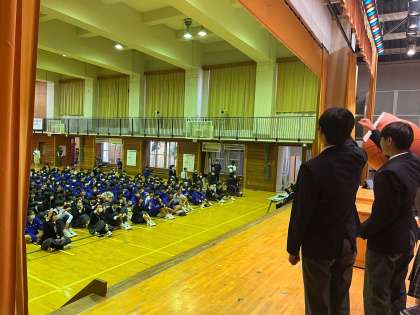 全校生徒の前で堂々と話す姿勢がかっこいいですね。(平野)