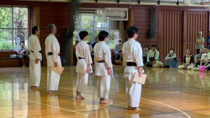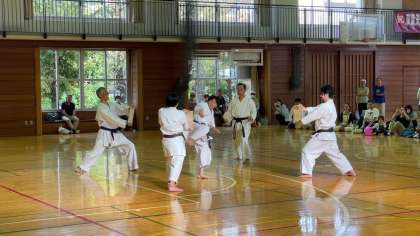 空手道の演武では、本校の生徒が板割りを披露しました。