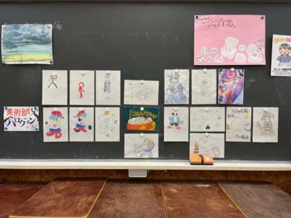 一枚に力を込めた人、何枚も描いた人、どれも素敵な作品ですので、美術室に立ち寄った際は是非見てください!