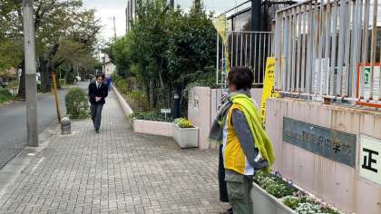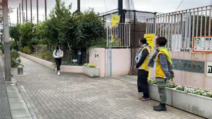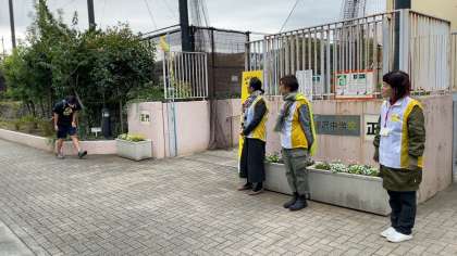 PTAの方々や地域の方々があいさつと見守りを行ってくださいました。