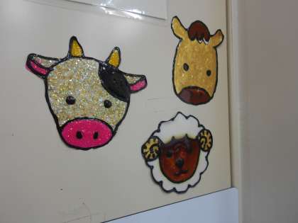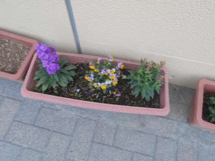 ※写真は、花ボラの育てる花壇とI組に貼られているシールです。
