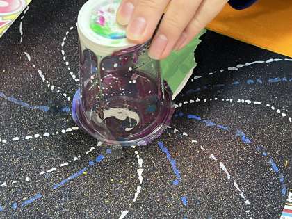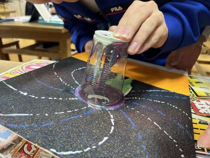 そんな中、家から持ってきた材料で、新しい表現に挑戦しようとする生徒!