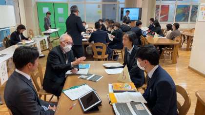 本日の授業について、学校経営支援アドバイザーや指導主事の方々から指導・助言を受けています。