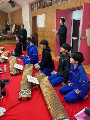 本日は、昨日に引き続き第二学年を対象にお箏の授業が行われています。