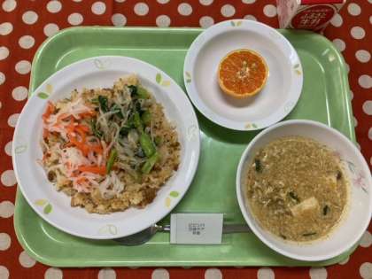 ビビンバは、好きな人が多い人気メニュー。おかわり多数、みんなよく食べました!