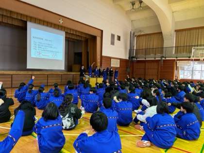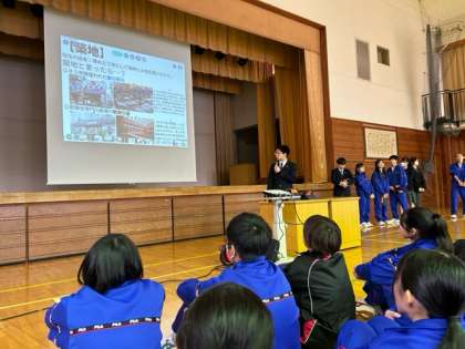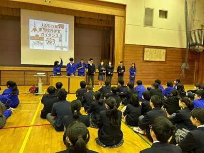 本日4時間目、体育館では2年生のための東京校外学習ガイダンスが行われました。実行委員を中心に、東京の歴史ある名所の紹介、お昼に食べるちゃんこ鍋のことなど、写真や地図を使ってとても上手に説明していました。これから班ごとにルートを決めていきます。楽しみですね。