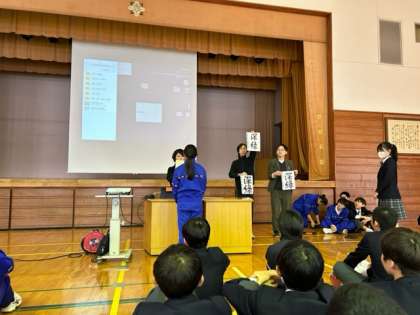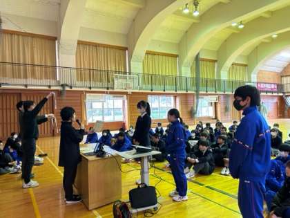 本校2年生の3名が、世田谷区立中学校生徒競書会で金賞をいただきました。先生方が持っている毛筆の美しい「深緑」は受賞者の作品です。国語の冬休みの課題にもある「書き初め」でも多くのひとが入選できるよう頑張りましょう。