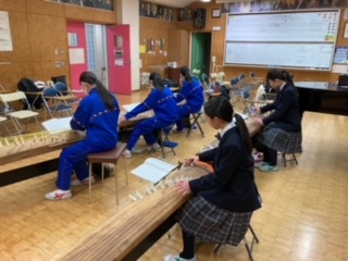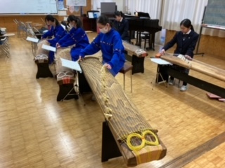 年が明けてから初めての練習でした。恥ずかしいから後ろから撮って!と言われて、お琴を弾く凛とした背中にしみじみと感動しました。でもやっぱり前からも撮りたかったので、斜めからもそっと…1年生も、2年生も、本当に立派に成長しています。(近藤)