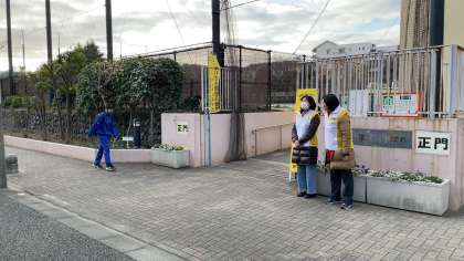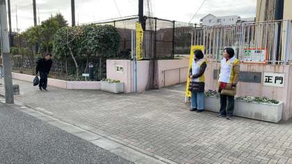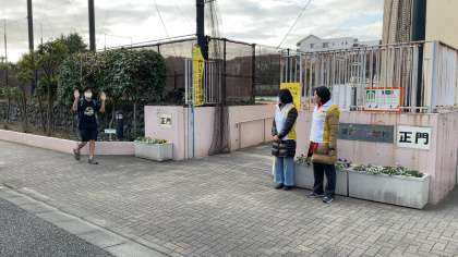 PTAの方々、地域の方々が子どもたちの見守りとあいさつを行ってくださいました。