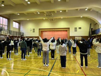 体育館で1年生が元気にダンスをしていました。