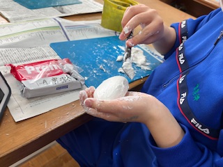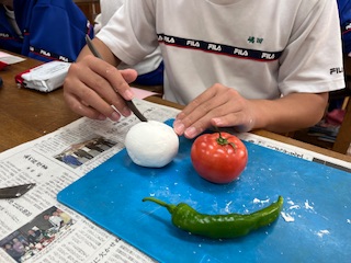 粘土の特徴を知ってから、本物を見ながら形をつくっています。