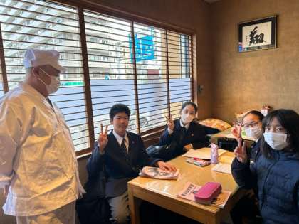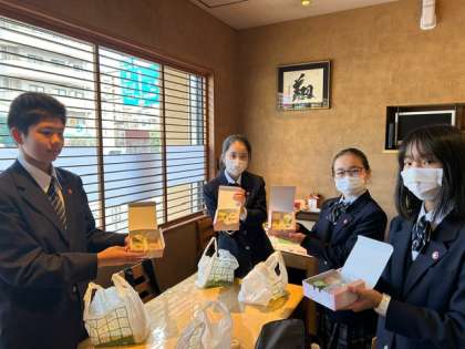芸術的な美しい練り切り作りの体験学習。作り終えた後も、「和菓子職人になったきっかけ」、「一番大変なこと」など、質問をしっかりとしていました。事後学習の準備もしっかりしています。