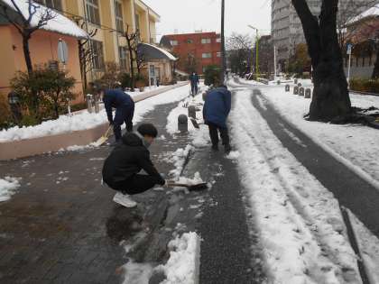 3枚目は、通学路を雪かきする先生と主事さんです。感謝ですね♪