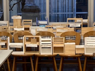 技術はヒノキスターで制作したラックが食堂にずらーっと並んでいます。
