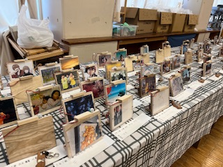 3年生の技術の作品は、フォトスタンドとキーホルダーです。