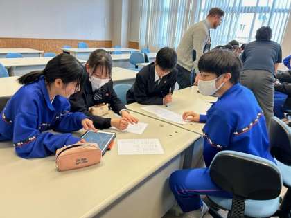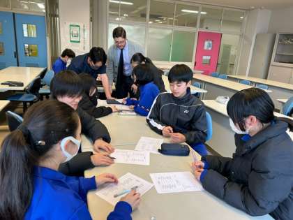 本日2年生の5,6校時は、高校出前授業です。たくさんの高校の先生に本校にお越しいただきました。こちらの教室では、品川エトワール女子高校のMAX先生による「楽しい英会話」の授業の様子です。ゲーム形式での授業、男子も女子もみんな反応が早くて、あっという間の50分でした。