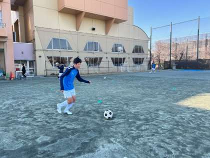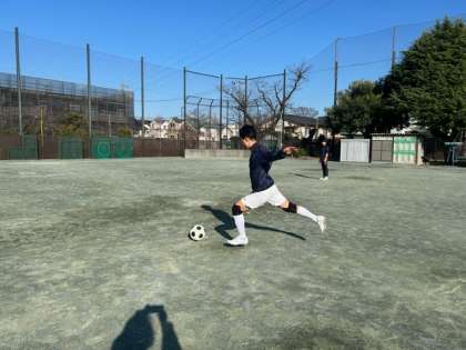 晴れ渡った放課後の校庭、サッカー部の練習です。ボールをキックをする姿、とてもカッコいいですね。3年生も練習にいました。残りわずかな中学校生活を精一杯楽しんでください。