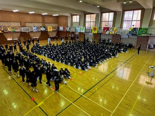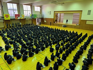 全校学活の様子です。 1学年はクラス数も増え新たな風が吹いています!