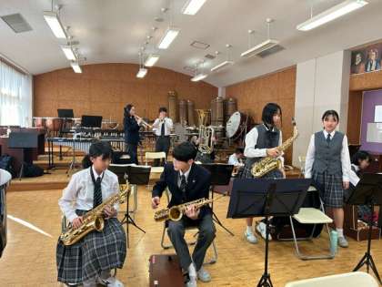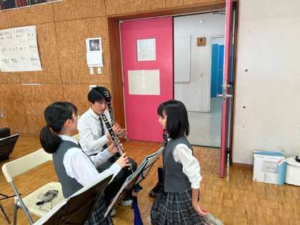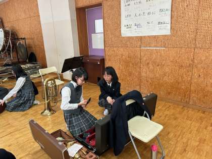 体験入部期間が始まりました。吹奏楽部には今日3人の一年生が来てくれています。興味をもってもらえて、とても嬉しいです?せっかくなのでたくさんの楽器に触れてみてくださいね。自分のしっくりくる形や音の楽器に出会えるかもしれません。