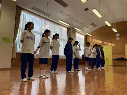 した。ダンス部では、グループごとに2,3年生がダンスを教え、発表しあいました。ダンスが初めての生徒も笑顔で踊っていて、