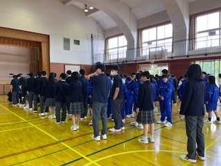 早めに体育館にいき、ぴしっと並ぶ3年生。流石です!