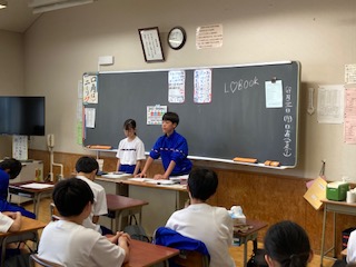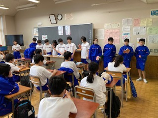 初の委員会が終わり、次の朝学活で委員会報告をしています。