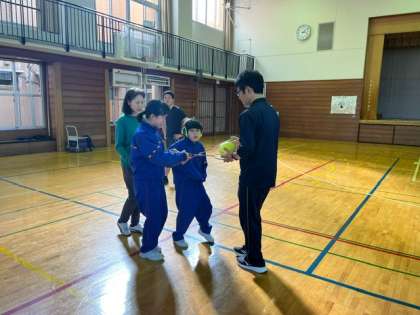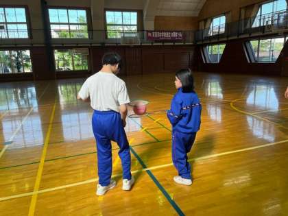 今日の体育は体育祭に向けてラケットリレーの練習をしました。1年生は初チャレンジでしたが、かけ声をかけながら息を合わせてできましたね。