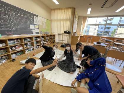 2Bはわいわいしながら楽しく制作していました!作成期間を通して、応援旗を完成させる仲間と更に仲を深めていってくれる予感がして、とても嬉しいです!