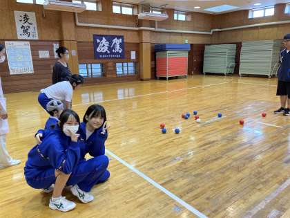 今日から「めっちゃボッチャ」が始まりました。2年生がI組の生徒と一緒に楽しんでいました!I組の生徒、ボッチャとても上手です!すごい!!