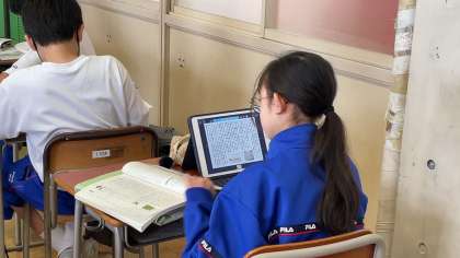1年生の国語では説明文をまとめていました。 集中してロイロノートに向かっていました。
