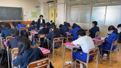 1年生の英語はアルファベットと聞き取る力のテストでした。 その後は英文を書く練習を頑張っていました。