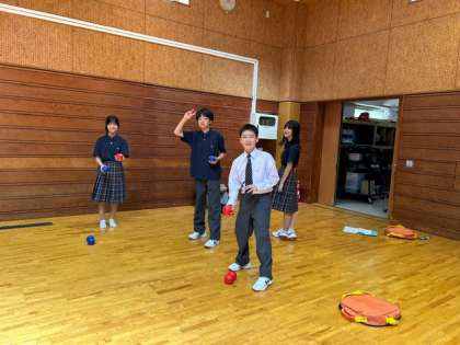 お昼休み、1年生と2年生が武道場でボッチャを楽しんでいました。ちょっとの時間でも身体を動かすと、気分もリフレッシュできます。午後はあともう一つ授業、気持ちのスイッチを切り替えて頑張っていきましょう。
