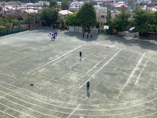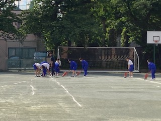 体育委員の3年生は体育祭練習期間中、毎朝7時前には登校し、各学年が競技の練習をするために、校庭にラインを引いてくれています。
